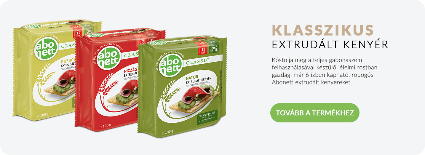Az Abonett tradícióit őrző családi vállalkozásként 100 %-ban természetes, alacsony kalóriatartalmú élelmiszereket kínál a vásárlóknak. Az innovatív és változatos kenyérhelyettesítő termékeink előállítása során környezetbarát technológiákat és anyagokat használunk, túlnyomórészt helyi dolgozóknak és termelőknek adva megélhetést.